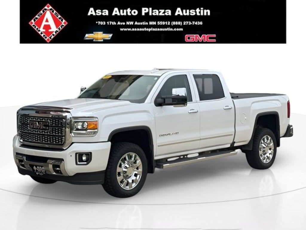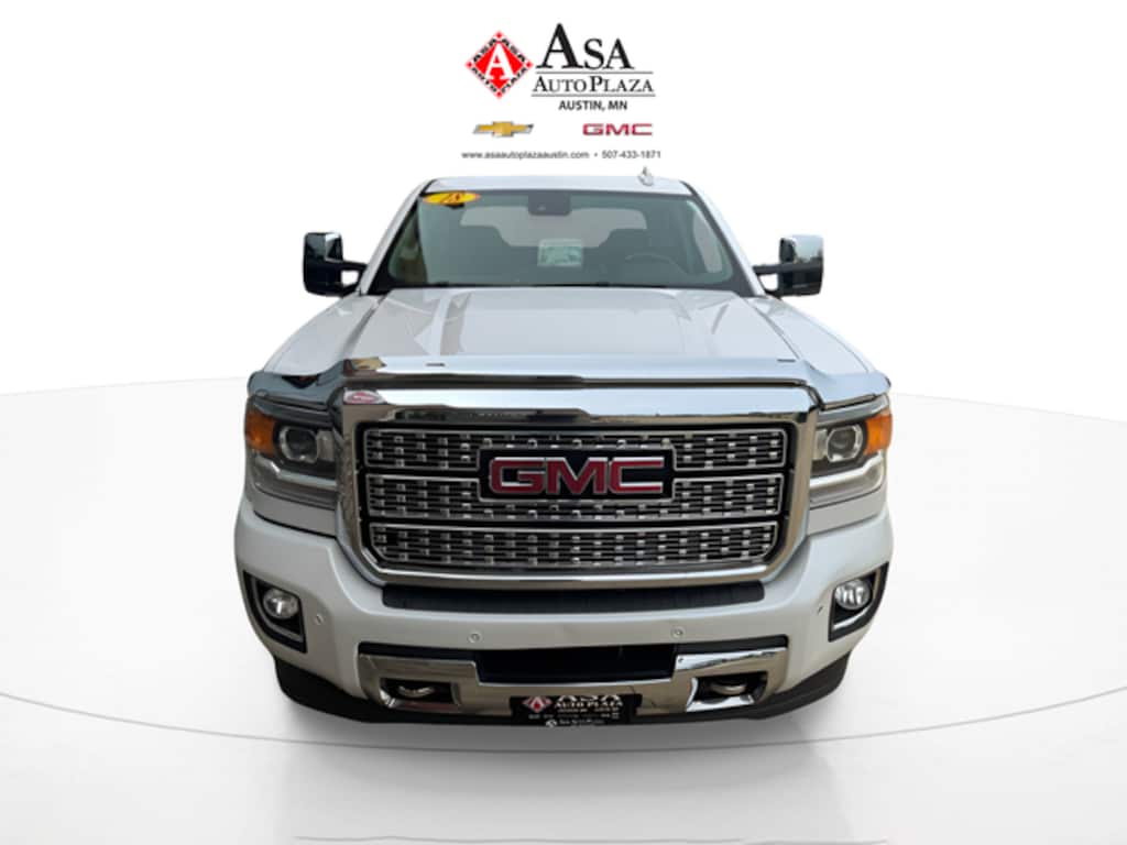 This 2018 GMC Sierra 2500HD Denali 4WD in White Frost Tricoat with 6-Speed Automatic HD Electronic with Overdrive, Vortec 6.0L V8 SFI Flex Fuel and finished with Jet Black Leather masterfully combines rugged capability with refined luxury, making it an ideal choice for those who demand both performance and style. At its core, this Sierra 2500HD Denali is engineered for heavy-duty tasks. Equipped with 6.6L Duramax V8 turbo-diesel engine, it delivers 445hp and an impressive 910 lb-ft of torque. This powertrain enables up to 13,000# and handles a payload of nearly 3,000#, ensuring it can handle a full day of work. It doesn't stop there. This Sierra 2500HD Denali is built for luxury, without compromise, too. Its cabin features premium materials, including leather-wrapped seating and woodgrain accents, providing an absolutely sophisticated environment for both drivers and passengers. Advanced technology, such as an intuitive infotainment system and safety features like lane departure warning and front collision alert, enhance the driving experience. This Sierra's design reflects its dual nature. Its bold exterior exudes strength, while the interior offers ample storage and customizable configurations to accommodate various needs. This 2018 GMC Sierra 2500HD Denali stands out on city streets, rugged terrain or in corn fields. PLUS Asa Perks at NO CHARGE to YOU! Check out Asa Perks in slide #2 or call us today for more information about this truck and Asa Perks. (507)433-1871. Asa Auto Plaza Your Hometown Family Dealership! AUSTIN STRONG